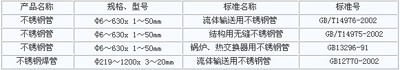 不銹鋼管規(guī)格、不銹鋼管標(biāo)準(zhǔn)名稱、不銹鋼管標(biāo)準(zhǔn)附下表: